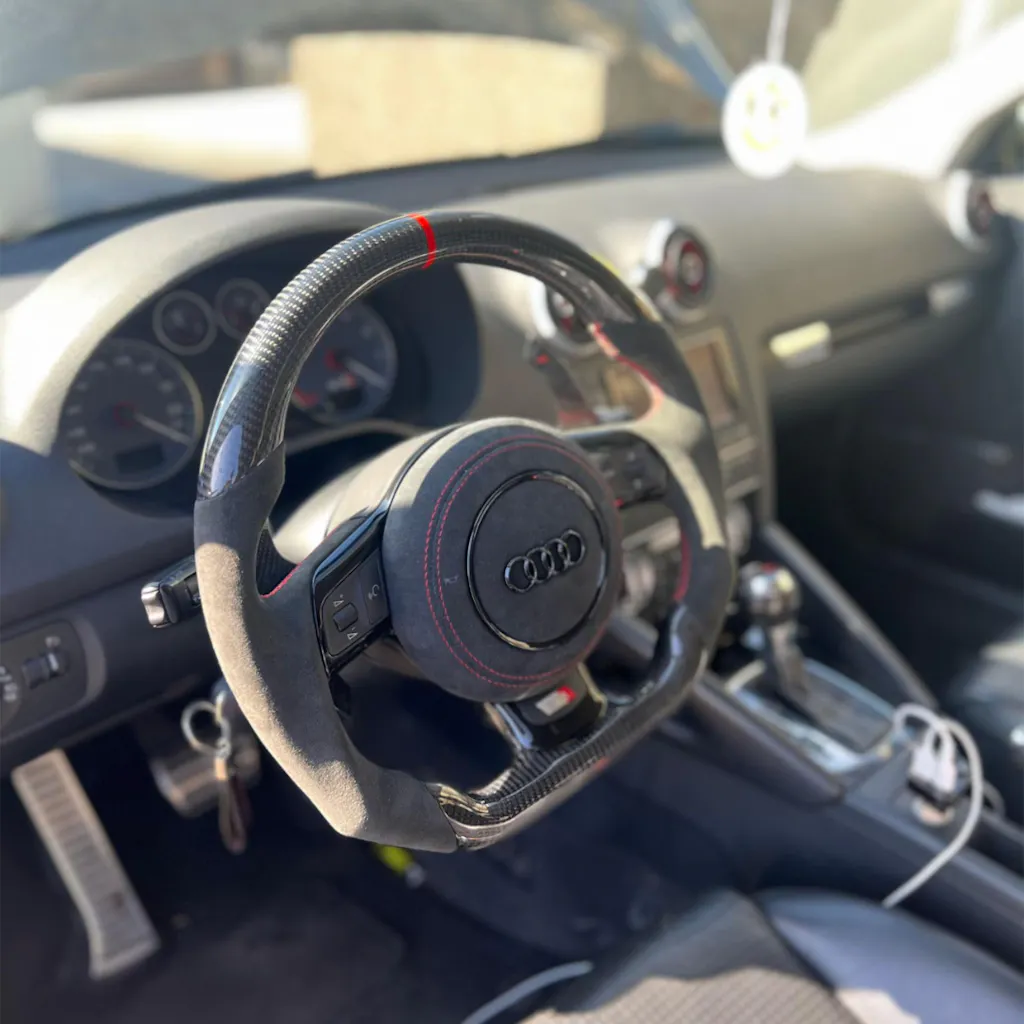 Transformez l'habitacle de votre Audi avec un volant entièrement sur mesure, alliant sportivité et matériaux de prestige. Conçu sur une base d'origine constructeur (OEM) pour garantir une sécurité et une rigidité parfaites, ce volant est configuré selon vos exigences exactes pour une prise en main exceptionnelle et un design unique.